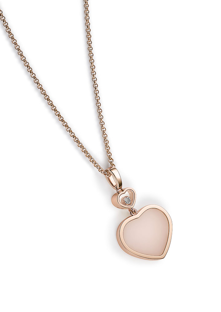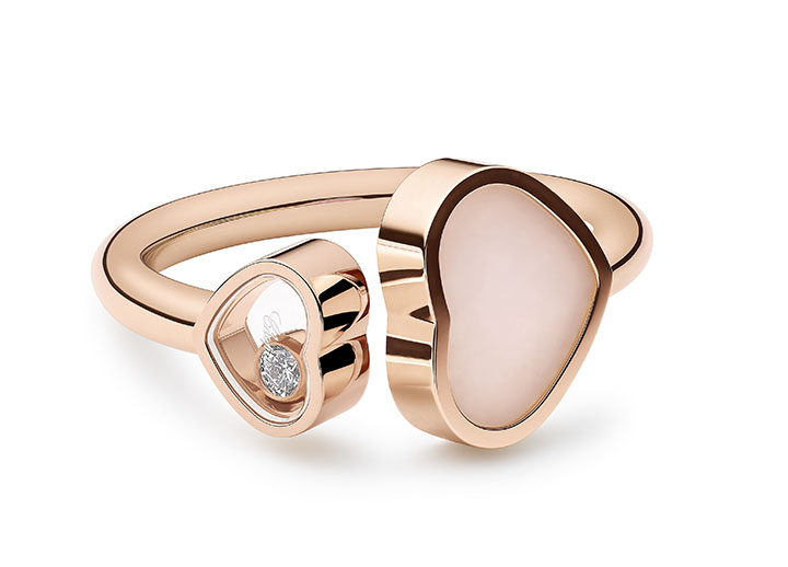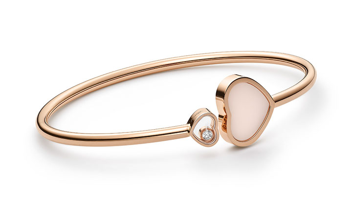 Caroline Scheufele’s Happy Hearts collection is a Chopard icon with its signature heart and dancing diamonds. The symbolic shape features regularly in the creations by the Maison’s Co-President and Artistic Director. Fashioned from ethically sourced gold, the Happy Hearts collection exudes a delightful, airy charm, ranging from vibrant, swirling designs to those adorned with dazzling diamonds. Whether worn individually or layered, these pieces radiate a sense of lightness and joy. Until now, the line featured malachite, white or Tahitian mother-of-pearl, onyx, carnelian, and sparkling diamonds. It is extended with pink opals found mainly in the Peruvian Andes worked into a pendant necklace, bracelet, ring and earrings design.