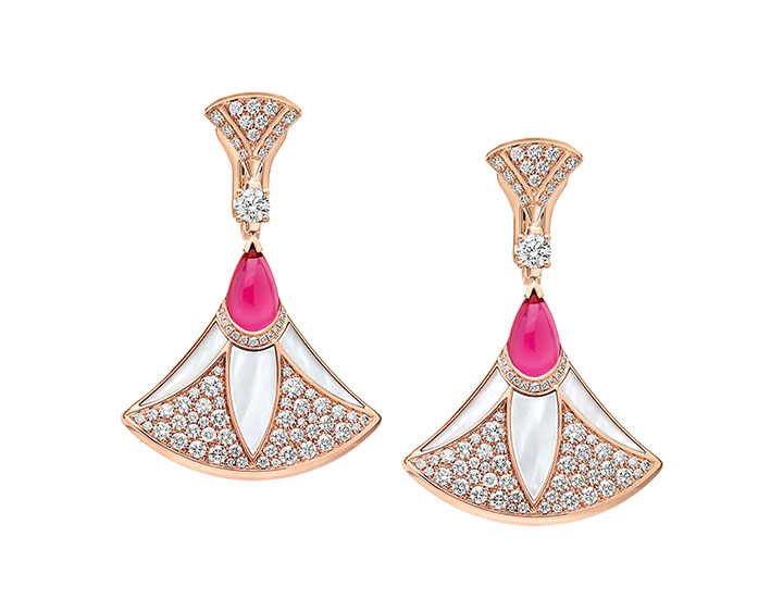 The new Diva’s Dream 18kt rose gold necklaces and matching earrings are as graceful as Bulgari’s muse, Anne Hathaway. The openwork design is slightly smaller than previous iterations, featuring a drop-shaped tanzanite, green tourmaline or rubellite for a flash of colour at the heart of a fan-like diamond frame. The necklace can be worn long or embracing the neck with a section of chain detached and worn separately as a bracelet.